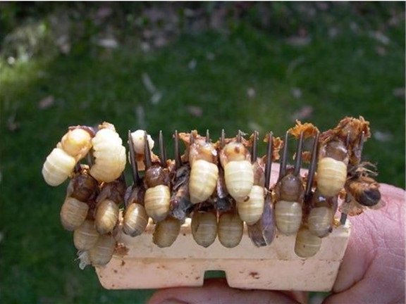 - تبلل لوحة التثبيت بالماء حتى لا يلتصق بها الأساس الشمعي ثم يوضع الإطار وبه الأساس الشمعي على لوحة التثبيت