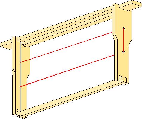 – يدخل طرف السلك العلوي في الثقب الأول للجانب الأيمن للإطار من الخارج للداخل ومنع للثقب بالجانب الأيسر من الداخل للخارج ويثبت هذا الطرف في مسمار يدق في الخشب.
