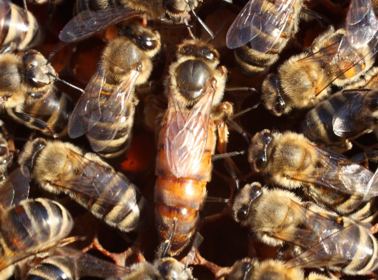 تقوم الملكة بقتل أخواتها والأمهات الكاذبة، التزاوج مع الذكور، تضع 1500 بيضةفي اليوم، وتضعفي العام ما يقرب من 200000 بيضة، تفرز الفرمون pheromone المسمى ” 9-hydroxydecenoic acid “، الذي يتركب من HOOC=C-C-C-C-C-C-COH-C.