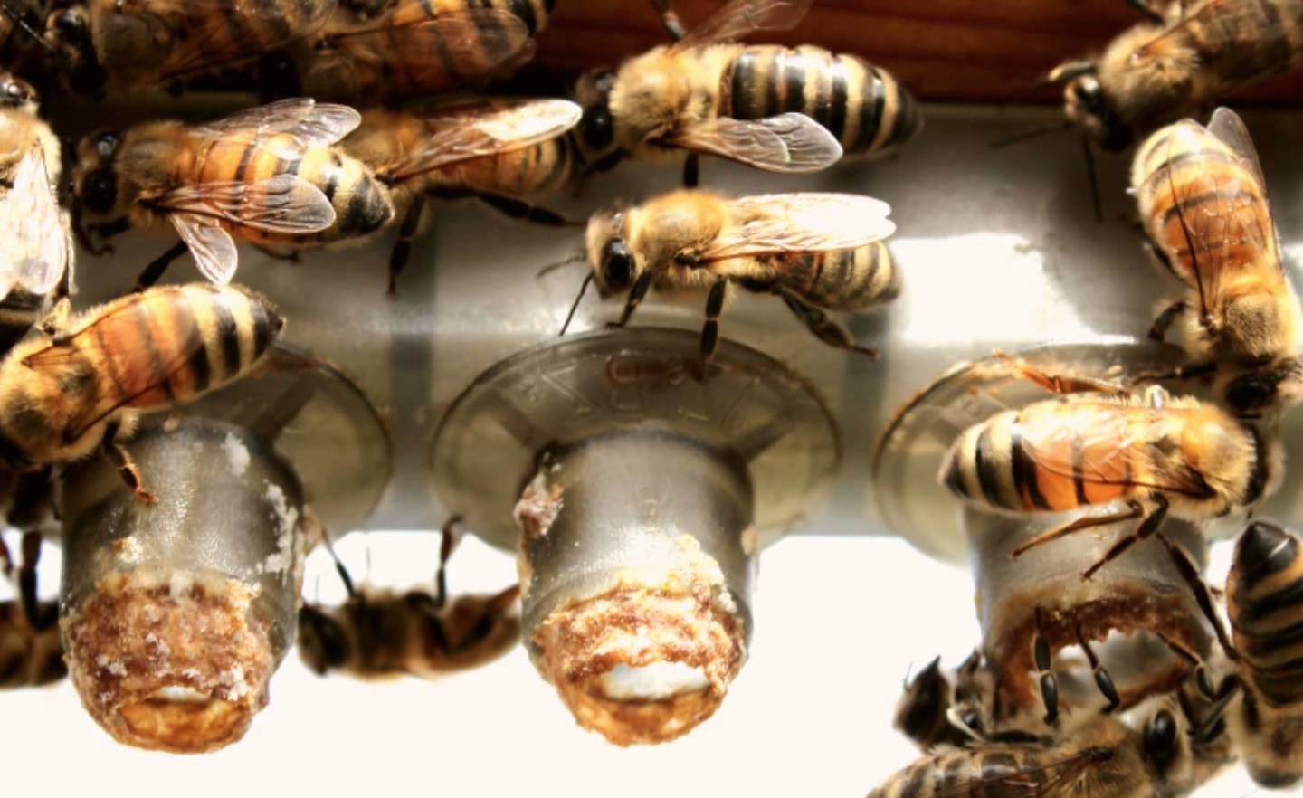 - مستعمرة في صندوق تطريد، وهو صندوق سفر يحتوي على أربعة أقراص عسل وحبوب لقاح فقط وإطار الكؤوس المطعمة، وبه كمية كبيرة من الشغالات الحاضنة، وميتم قبل وضع إطار الكؤوس بـ 4-6 ساعات، وتكون أرضية صندوق السفر من السلك للتهوية، ويقفل الصندوق ويبقى إطار الكؤوس المطعمة في صندوق التطريد لمدة يوم، فهذه الظروف توحى للنحل كأنه في حالة تطريد، فيزداد اهتمام النحل بالكؤوس.